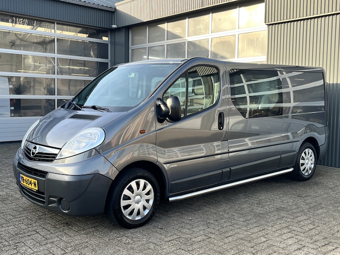 Een zeer nette Opel Vivaro 2.0 CDTI 115pk L2H1 Dubbele cabine met Airco Cruise controle Trekhaak 2000kg trekgewicht Navigatiesysteem Telefoonverbinding Sitebars DC Schuifdeur 5-Persoons Euro 5