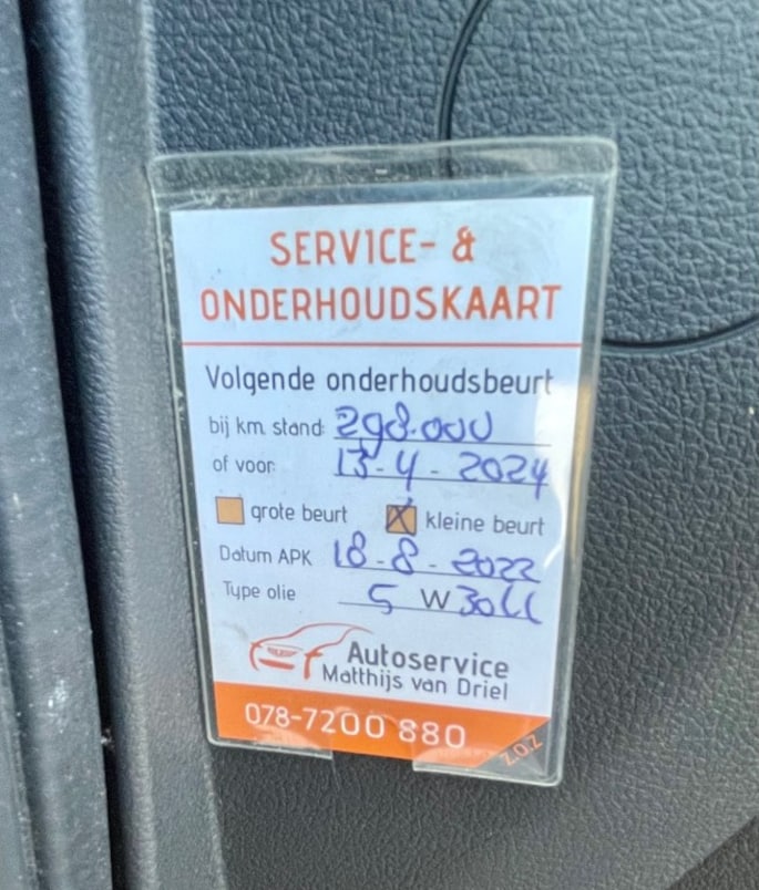 - Onderhoudsboekje aanwezig