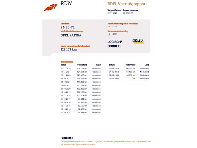 Kilometerstand gecontroleerd