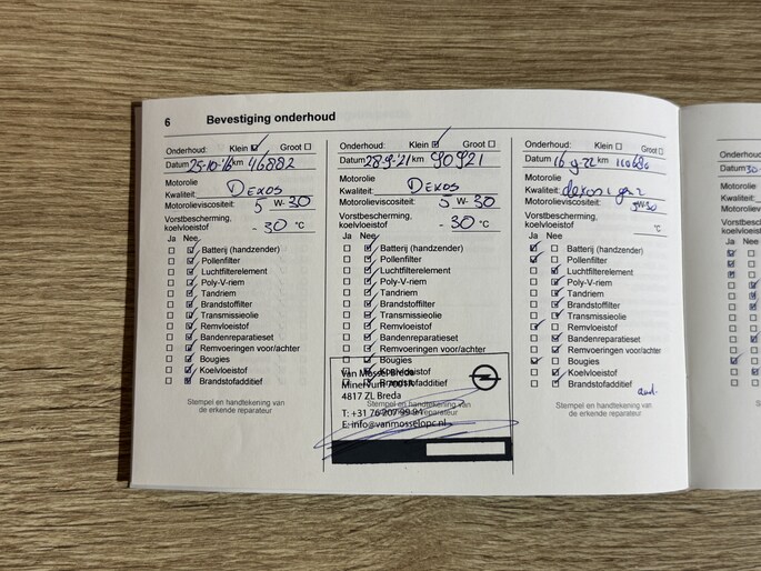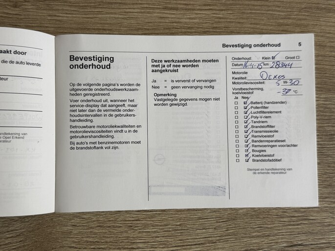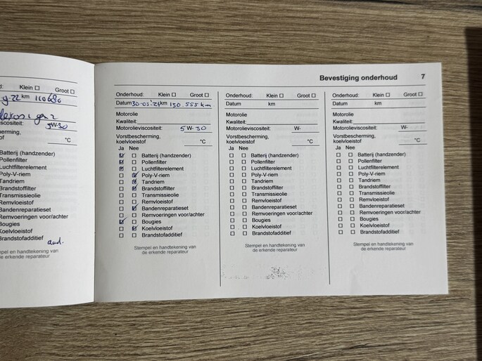 Onderhoudsboekjes: Aanwezig