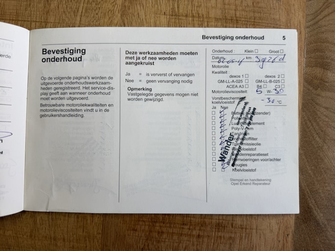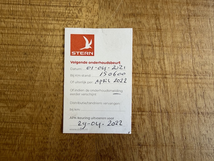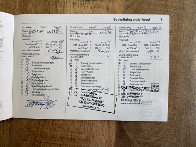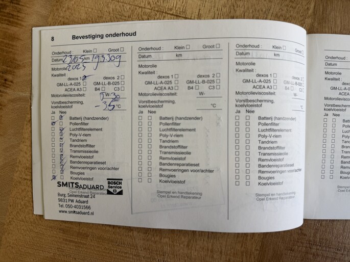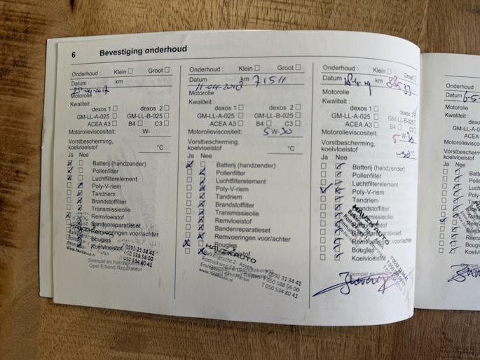 Onderhoudsboekjes: Aanwezig