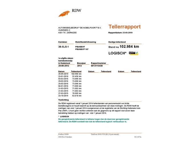 Kilometerstand gecontroleerd