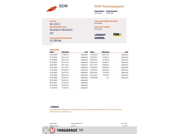 Een onderhoudsbeurt volgens schema of 12 maanden onderhoudsvrij (m.u.v dis) , een volledige car cleaning, minimaal 25.000 kilometer reserve op de distributieriem én minimaal 3 millimeter bandenprofiel, airconditioning gevuld en remvloeistof ververst, nieuwe ruitenwissers, minimaal 15 liter brandstof in de tank en 1 jaar Vakgarage pechhulp
