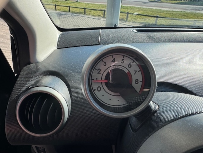 in delen neerkl. achterb., passagiersairbag, radio CD speler, startblokkering, stuurbekrachtiging, stuur verstelbaar, zij airbag(s) v., toerenteller, metallic lak.