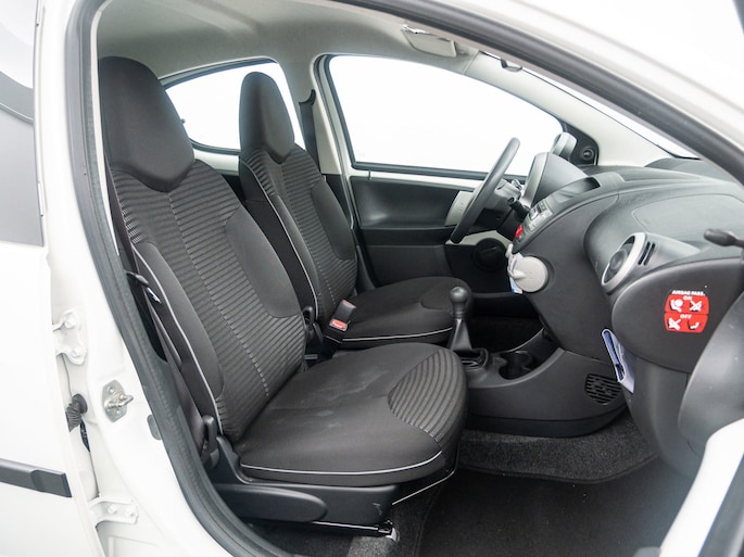 De 107 is uitgevoerd met leuke opties zoals: Elektrische ramen, Centrale deurvergendeling, ABS, Radio met Aux aansluiting t.b.v. Bluetooth connectie, Bestuurder en passagiers airbag, Achterbak in delen neerklapbaar, Stuurbekrachtiging, Toerenteller etc..