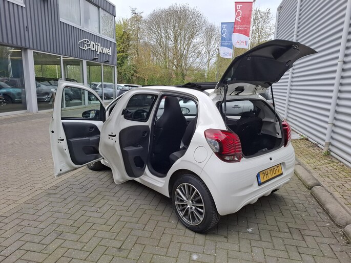 Fraaie Peugeot 108 Active Cabrio Top! 5-drs met elektrisch stoffen Cabriodak, Airconditioning, Bluetooth, extra getint glas, lichtmetalen velgen etc. De verkoopprijs is compleet rijklaar inclusief Bovag-garantie, Nationale Autopas, onderhoudsbeurt, APK en multi-point kwaliteitscontrole.