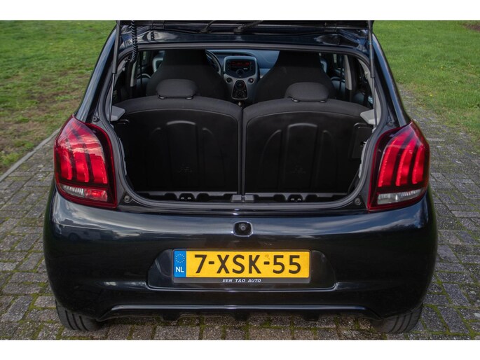 Deze Peugeot 108 heeft een modern design met een nette carrosserie in een zwart metallic lak. De strakke lijnen, het getinte glas en de bumpers in carrosseriekleur maken haar looks helemaal af. Dankzij de LED-dagrijverlichting ben je altijd goed zichtbaar en binnenin geniet je van een fris interieur met een in hoogte verstelbare bestuurdersstoel en een neerklapbare achterbank, zodat je altijd voldoende bagageruimte hebt.