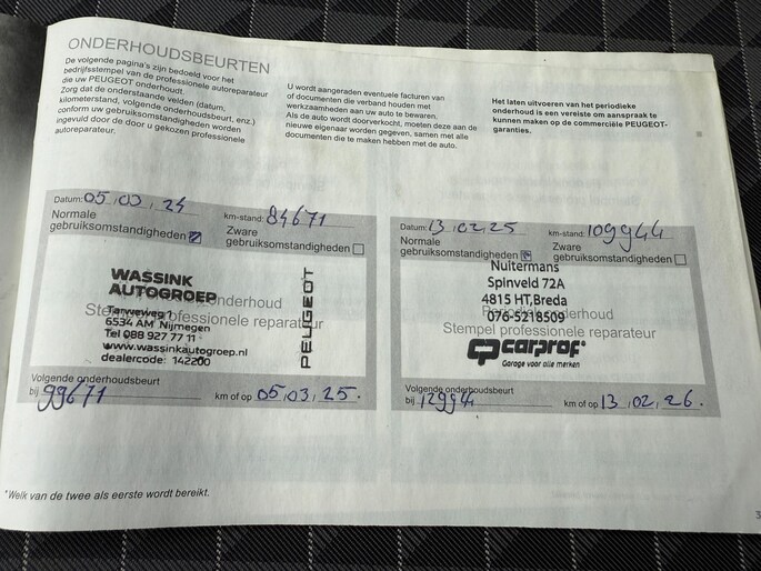 Onderhoudsboekjes: Aanwezig