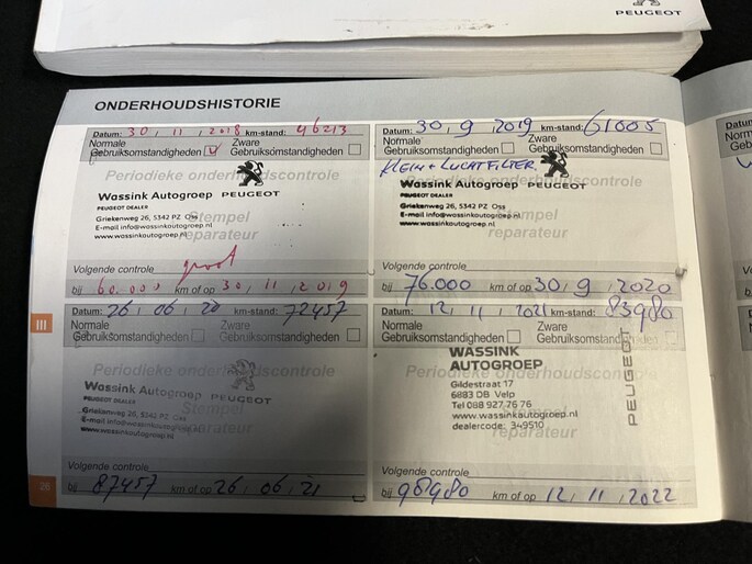 Onderhoudsboekjes: Aanwezig