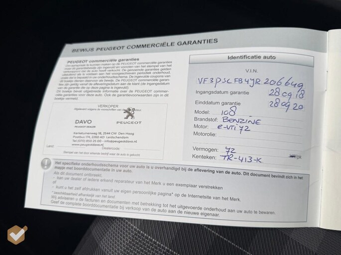 Onderhoudsboekje aanwezig