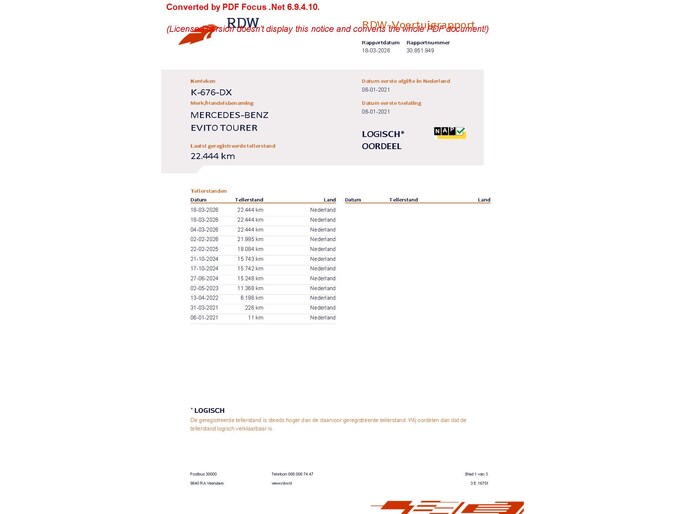 Kilometerstand gecontroleerd