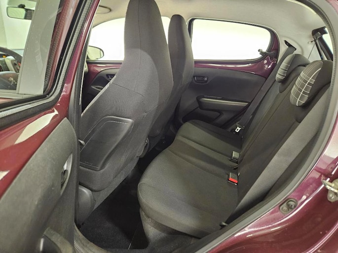 Deze Peugeot 108 ziet er netjes en modern uit met haar paarse metallic lak die mooi glanst in het licht. De led-dagrijverlichting en mistlampen geven haar een eigentijdse uitstraling, terwijl de buitenspiegels in carrosseriekleur zorgen voor een strak geheel. Binnenin tref je een fris en netjes interieur aan. De bekleding is schoon en goed onderhouden, de bestuurdersstoel is in hoogte verstelbaar en het multifunctionele stuur ligt prettig in de hand. Ook de achterbank is praktisch: in delen neerklapbaar, zodat je eenvoudig extra ruimte creëert wanneer nodig.