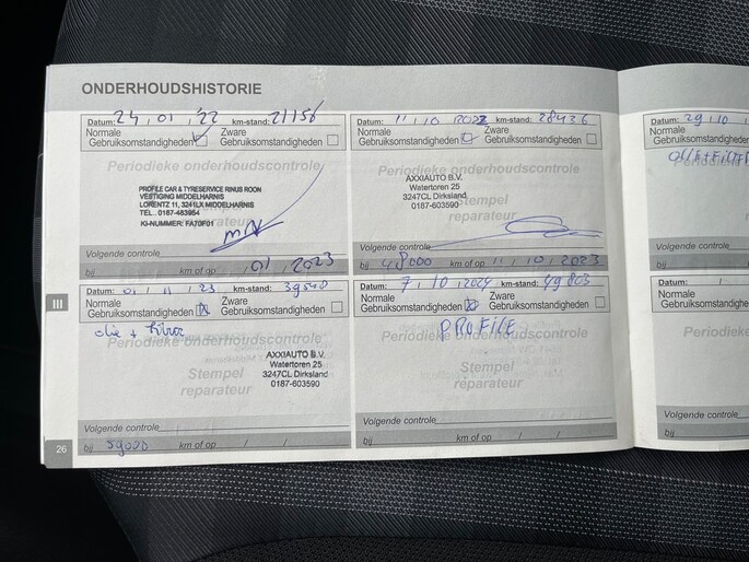 Onderhoudsboekjes: Aanwezig