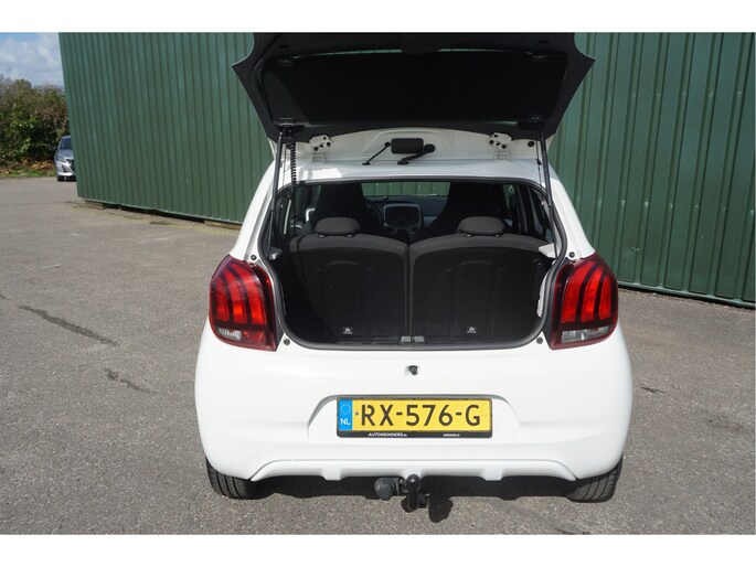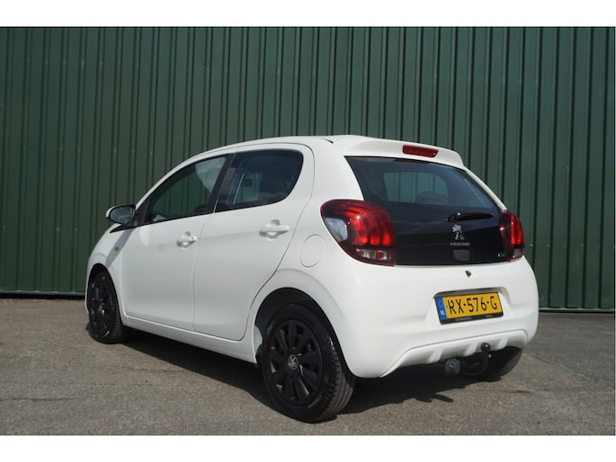 Mooie en luxe Peugeot 108 met 5-deuren, een afneembare trekhaak (voor een fietsendrager), goed werkende airconditioning en LED-dagrijverlichting!