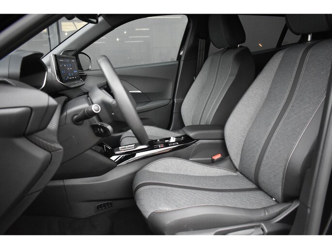 Hij biedt volop ruimte, deze Peugeot e-2008, en dankzij zijn elektrische aandrijving is er ook plenty vermogen voor een dynamische rijstijl. De prestaties van de elektromotor kunnen de vergelijking met een brandstofmotor moeiteloos aan. Bij de uitrusting van deze Peugeot horen onder meer elektrisch verstelbare voorstoelen, 17 inch lichtmetalen velgen, LED koplampen, extra getint glas, in delen neerklapbare achterbank en LED-achterlichten. Alle functies voor een veilige en zuinige rit worden overzichtelijk weergegeven op het digitale dashboard. Nooit meer parkeerschade dankzij de achteruitrijcamera. Een veiligheidsverhogende optie is de ingebouwde spraakbediening. Terwijl u uw ogen op de weg houdt, bedient u de auto met uw stem. Pech of storing, altijd vervelend. Maar met Connected Services weet u direct wat eraan scheelt. En dus ook wat er moet gebeuren. Het comfort wordt verhoogd door de aanwezige automatische airconditioning. Ook DAB ontvangst, regensensor, cruise control, keyless entry, automatisch dimmende binnenspiegel en lederen stuur zijn aan boord. Geavanceerde veiligheidssystemen kijken tijdens elke rit met u mee en schatten continu de risico's in. Tijdens de rit hebt u altijd een bijrijder, want de verkeersbord-detectie leest de borden langs de weg en projecteert ze voor u op het instrumentarium. Onbedoeld buiten de rijstrook raken wordt voorkomen door het Lane-keeping systeem. Vermoeid achter het stuur zitten vergroot de kans op een ongeval. Vermoeidheidsherkenning waarschuwt tijdig als u aan een rustpauze toe bent. Bovenop deze veiligheidsfeatures heeft deze Peugeot bovendien hill hold functie, autonoom remsysteem en bandenspanningcontrolesysteem. Zullen we 'm even voor u klaarzetten? Neem nu contact op voor een proefrit!