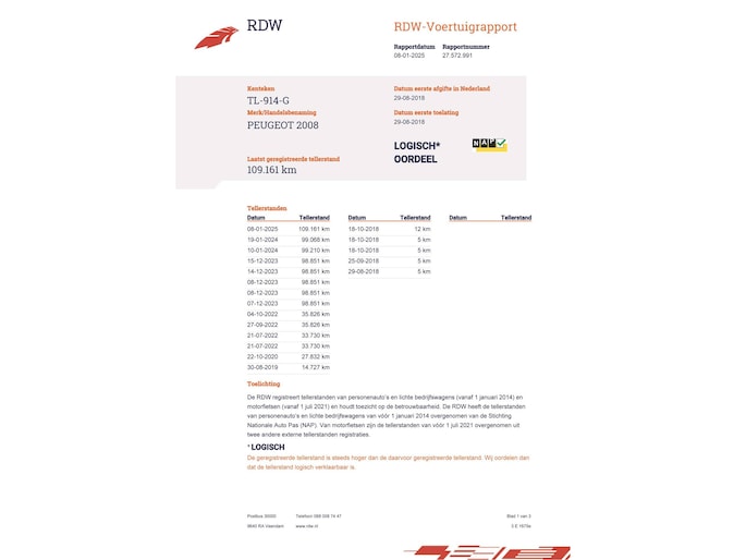 Kilometerstand gecontroleerd