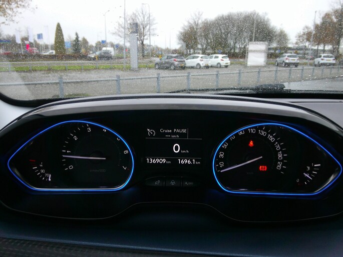 Selecteer uw reisbestemming en het full map navigatiesysteem brengt u snel waar u moet zijn. Dankzij electronic climate control is het interieur behaaglijk warm of verfrissend koel. Het geluidssysteem is gemakkelijk en veilig te bedienen vanaf het stuur. Inparkeren en uitparkeren kost geen enkele moeite dankzij de parkeersensoren. Het drukke verkeer eist onderweg al uw aandacht op. Daarom is het goed dat deze Peugeot is voorzien van diverse systemen die u assisteren tijdens de rit. Een automatisch inschakelbare verlichting neemt het waar als het donker wordt of gaat schemeren, en schakelt dan automatisch de verlichting in. Op dezelfde manier "ziet" de regensensor de eerste spatjes regen en schakelt dan de ruitenwissers in, en als het harder gaat regenen zet hij de ruitenwissers ook in een snellere stand. En deze auto heeft ook cruise control, automatisch dimmende binnenspiegel, lederen stuur, centrale deurvergrendeling met afstandsbediening en boordcomputer als standaard uitrusting.