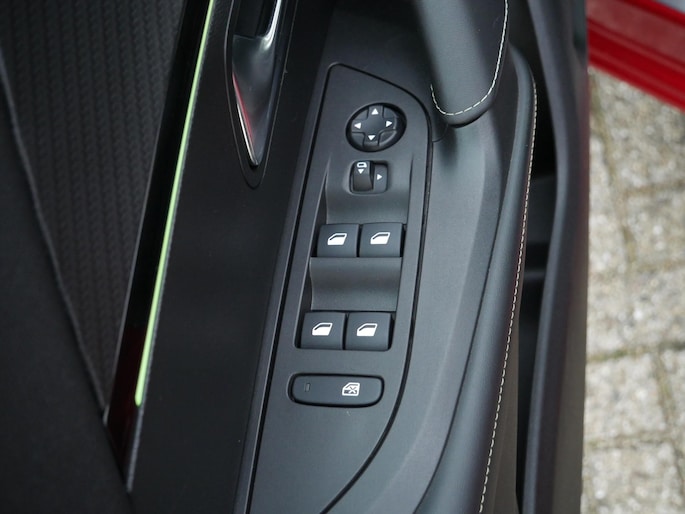 • Geperforeerd lederen sportstuurwiel afgewerkt met groen stiksel en GT-logo