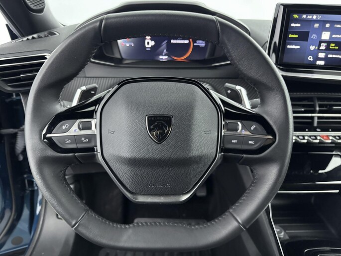 Het digitale dashboard is niet alleen enorm fraai en handig, maar draagt actief bij aan een veilige en slimme rit. Connected Services voegt nog meer comfort en veiligheid toe aan deze auto. Deze Peugeot is voorzien van knoppen op het stuur om het navigatiesysteem en het audiosysteem met DAB-ontvangst te bedienen. Smartphone in het rood? Geen punt, de draadloze telefoonlader zorgt voor een volle accu. Met automatische airconditioning hoeft u alleen de gewenste temperatuur in te stellen. Het systeem doet de rest. En deze auto heeft ook parkeersensoren achter, regensensor, cruise control, keyless entry, automatisch dimmende binnenspiegel en lederen stuur als standaard uitrusting.