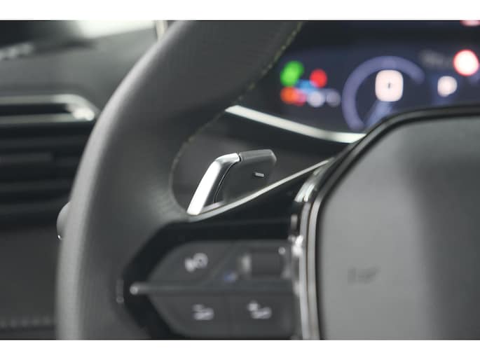Een gevisualiseerd overzicht van alle belangrijke functies wordt geleverd door het digitale dashboard. Bij het inparkeren hoeft u het laatste stukje niet te gokken: de achteruitrijcamera kijkt voor u uit. Adaptive cruise control houdt de ingestelde snelheid vast en houdt automatisch afstand tot uw voorligger. Met de automatische airconditioning selecteert u de gewenste temperatuur. Het systeem doet de rest. Knoppen voor audio-aanpassingen zijn onder direct handbereik met de audiobediening op het stuur. Ook is de Peugeot uitgerust met: draadloos opladen, DAB ontvangst, regensensor, sportstuurwiel, keyless entry en automatisch dimmende binnenspiegel.