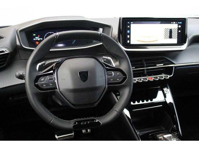 - Geperforeerd lederen sportstuurwiel afgewerkt met groen stiksel en GT-logo