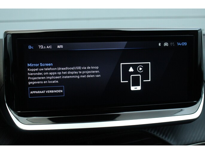- Peugeot Touch screen 10’’ met Peugeot i Connect, 2 USB Type C aansluitingen, Bluetooth®, Mirror screen (Apple CarPlay en Android Auto), Wifi, DAB+ digitale radio ontvangst en Toggles Switches