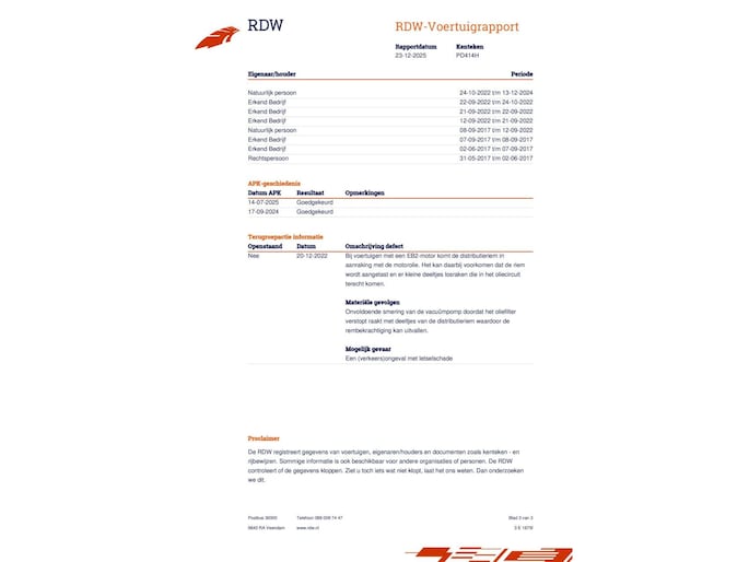 Kilometerstand gecontroleerd