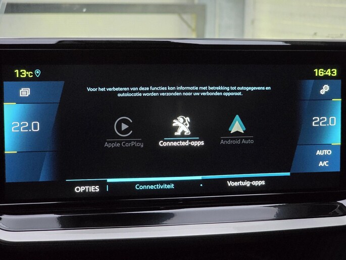Met het digitale dashboard heeft u essentiële info in beeld. Altijd, overal. De 180° achteruitrijcamera brengt precies in zicht wat zich achter u bevindt en toont een glashelder beeld op hoge resolutie. Een geluidssignaal waarschuwt hoeveel ruimte u nog heeft. Uw smartphone wordt een dashboard, met alle functies in beeld. Dankzij Connected Services en de speciale app. Kies de muziek waarvan u houdt, dankzij de DAB-radio klinkt het altijd geweldig. Intussen bedient u het audiosysteem en het full map navigatiesysteem met de knoppen op het stuur of met uw stem. De automatische airconditioning zorgt voor een behaaglijk klimaat in de auto. Deze Peugeot is voorzien van keyless start met startknop, regensensor, cruise control, een in hoogte en diepte verstelbaar lederen sportstuurwiel, automatisch dimmende binnenspiegel, isofix-aansluitingen en centrale deurvergrendeling met afstandsbediening.