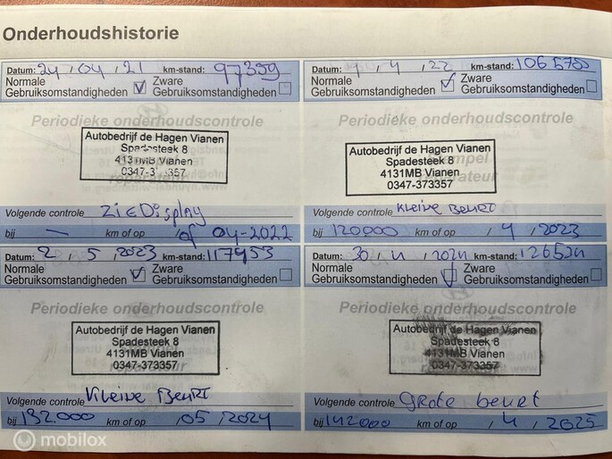 ✔ Onderhoudsboekjes afgestempeld aanwezig