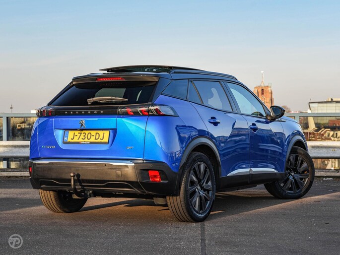 Peugeot e-2008 EV GT 50 kWh Panoramadak Trekhaak Rondomzicht Camera Cruise Control Adaptief Stoelverwarming Sfeerverlichting Navigatie Apple CarPlay Android Auto 18"