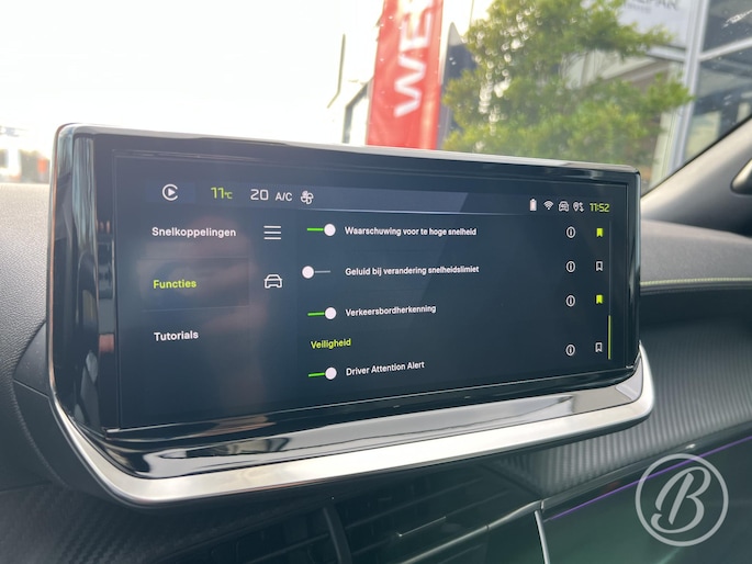 Zoals u mag verwachten van deze Peugeot 2008 is hij uitgerust met een reeks aan actieve veiligheidssystemen. Verkeersbord-detectie herkent verkeersborden en toont deze op het instrumentarium van de auto. Het Lane-keeping systeem registreert permanent of u binnen de lijnen van de rijstrook blijft; dwaalt u onbedoeld af, dan waarschuwt het systeem en corrigeert de koers. Botsingen met een voorligger gebeuren relatief vaak. De forward collision warning slaat tijdig alarm als dat risico ontstaat, zodat u kunt ingrijpen. Met voorzieningen als hill hold functie, vermoeidheidsherkenning, autonoom remsysteem en bandenspanningcontrolesysteem, bent u altijd veilig onderweg.
