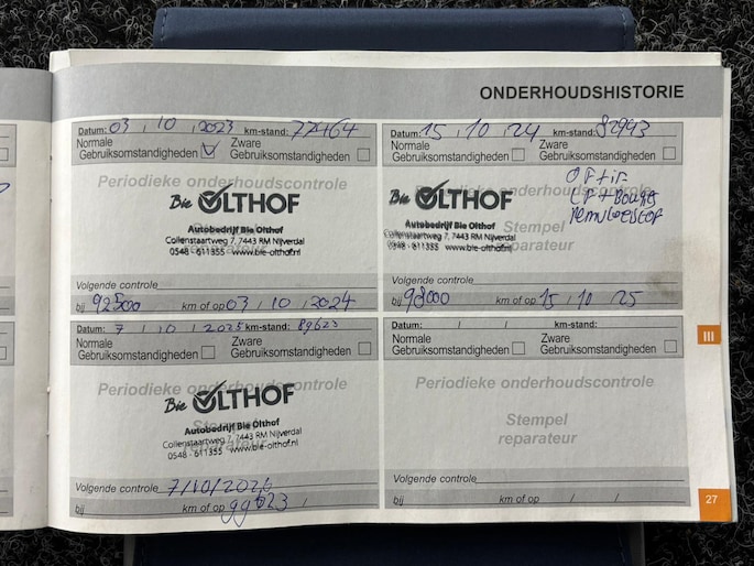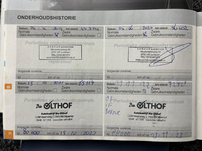 Onderhoudsboekjes: Aanwezig