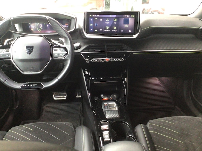 - Geperforeerd lederen sportstuurwiel afgewerkt met groen stiksel en GT-logo