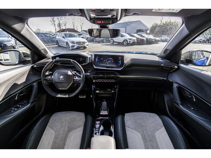 De Peugeot e-2008 vertegenwoordigt de nieuwe generatie auto's en verenigt elektrische kwaliteit en duurzaamheid met elkaar. U hoort slechts het lichte gezoem van de elektromotor tijdens het rijden. De hoogwaardige uitstraling van deze auto wordt benadrukt door de lederen bekleding. Doe maar luxe! Neem plaats in de verwarmbare voorstoelen en voel de weldaad in koude dagen. Sportief rijden stelt eisen aan een stevige zitpositie voor rijder en bijrijder. Vandaar de strakke sportstoelen! Het interieur baadt in een zee van licht met het elektrische bediende glazen panoramadak. In het donker zorgt de xenonverlichting voor een goed zicht op de weg. Verder is de Peugeot uitgerust met: 18 inch lichtmetalen velgen, Full LED koplampen, zwarte hemelbekleding, donker getint glas achter, in delen neerklapbare achterbank en LED-achterlichten.