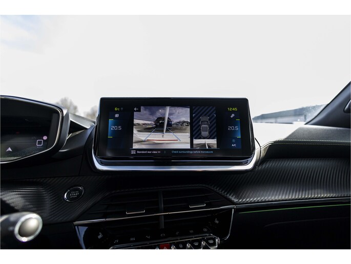 De nieuwste veiligheidssystemen komen in deze Peugeot e-2008 samen. De actuele snelheidslimiet, een inhaalverbod en andere verkeersborden; de verkeersborddetectie ondersteunt u tijdens elke rit. Keep your lane? Het Lane-keeping systeem zorgt er automatisch voor. De dodehoekdetectie waarschuwt als een ander voertuig zich in uw dode hoek bevindt. Ook helpen het forward collision warning system, hill hold functie, vermoeidheidsherkenning, autonoom remsysteem en bandenspanningcontrolesysteem, uw rit tot een veilige rit te maken.