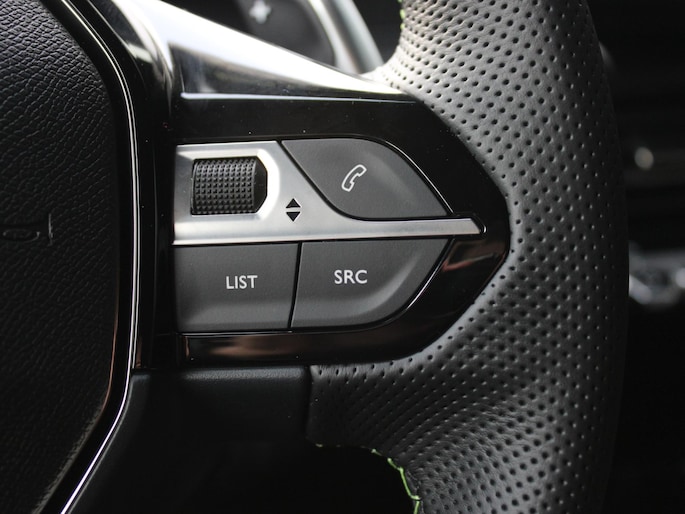 Het digitale dashboard in deze auto maakt personalisatie van uw cockpitinterface mogelijk. Met de achteruitrijcamera ziet u precies wat er achter de auto gebeurt. Adaptive cruise control is een comfortabele en veilige optie. Het systeem reguleert de snelheid en houdt automatisch afstand tot uw voorligger. De speciale app verbindt met Connected Services, die de status van vitale functies bijhoudt en waarschuwt als u bijvoorbeeld moet tanken, de bandenspanning moet controleren of olie moet bijvullen. Een belangrijke veiligheidsvoorziening is de bediening van het audiosysteem en het full map navigatiesysteem via knoppen op het stuur. Dab-ontvangst geeft daarbij een kraakheldere ontvangst. Met automatische airconditioning, sportstuur met schakelpaddels, draadloos opladen, regensensor, keyless entry en automatisch dimmende binnenspiegel is deze Peugeot helemaal compleet.