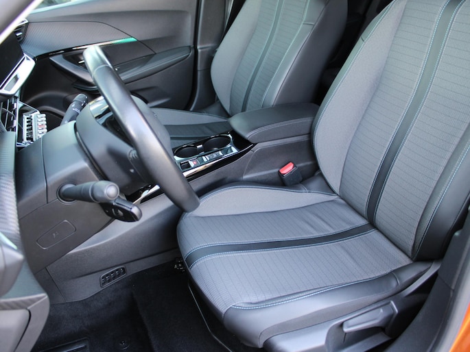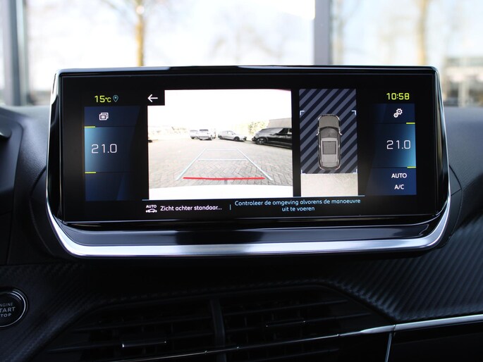De nieuwste veiligheidssystemen komen in deze Peugeot e-2008 samen. Onderweg fungeert de verkeersbord-detectie als het ware als uw bijrijder en attendeert u op de verkeersborden langs de weg. Mooi binnen de lijnen van de rijstrook blijven? Het Lane-keeping systeem helpt altijd een handje. Kop-staartbotsingen vormen een belangrijk deel van de meest voorkomende aanrijdingen. De forward collision warning van deze auto voorkomt zulke botsingen geheel of reduceert de ernst van de schade aanzienlijk. U bent mede dankzij hill hold functie, vermoeidheidsherkenning, autonoom remsysteem en bandenspanningcontrolesysteem steeds veilig onderweg.