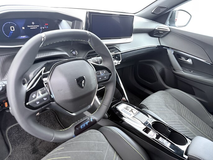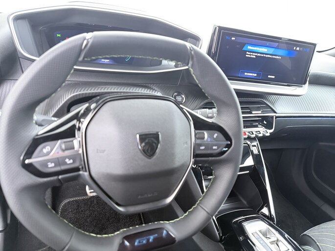 - Geperforeerd lederen sportstuurwiel afgewerkt met groen stiksel en GT-logo
