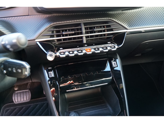 - Dashboard in zacht materiaal met carboneffect en hoogglans zwarte sierstrip