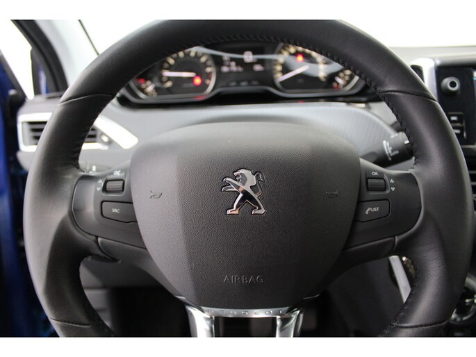 Een smartphone met internetverbinding legt eenvoudig overal contact met de auto. U kunt functies activeren en de conditie van de auto monitoren. U kunt het audiosysteem met DAB-ontvangst en het full map navigatiesysteem bedienen met de knoppen op het stuur. De sensoren van de achteropkomend verkeer waarschuwing registreren wat er gebeurt in de dode hoeken en achter u. U krijgt meteen een waarschuwing als u een achterligger over het hoofd ziet. Parkeersensoren zijn een handig hulpmiddel om parkeerschades te voorkomen. Het drukke verkeer eist onderweg al uw aandacht op. Daarom is het goed dat deze Peugeot is voorzien van diverse systemen die u assisteren tijdens de rit. Een automatisch inschakelbare verlichting neemt het waar als het donker wordt of gaat schemeren, en schakelt dan automatisch de verlichting in. Op dezelfde manier "ziet" de regensensor de eerste spatjes regen en schakelt dan de ruitenwissers in, en als het harder gaat regenen zet hij de ruitenwissers ook in een snellere stand. Ook cruise control, airconditioning, lederen stuur, centrale deurvergrendeling met afstandsbediening en boordcomputer zijn aan boord.