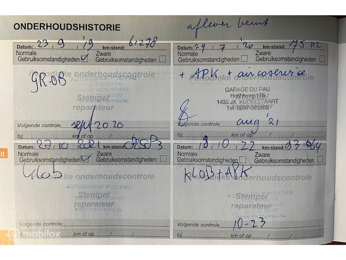 – Onderhoudsboekjes aanwezig en afgestempeld