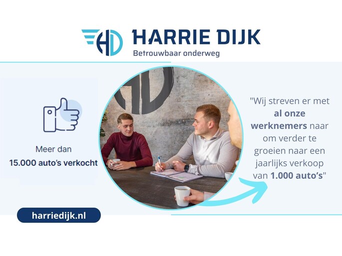 Wil je wat meer weten over ons bedrijf? Autobedrijf Harrie Dijk is sinds 1992 een full-service autobedrijf met inmiddels een voorraad van ruim 100 auto’s. Het gaat hier vaak om zeer jong gebruikte occasions. Deze auto’s hebben een volledig bekend historie, komen meestal van de eerste eigenaar en zijn dealeronderhouden. Wij zijn een enthousiast familiebedrijf met de service van een dorpsgarage met als doel een jaarlijkse verkoop van 1.000 auto’s. Benieuwd naar hoe onze klanten een aankoop bij ons ervaren? Bekijk dan eens onze onafhankelijke reviews op de website. Hier zijn wij vanzelfsprekend enorm trots op. Liever eerst contact via Whatsapp? Neem dan contact op via: +31 657929380 of gebruik de volgende link: https://wa.me/31657929380