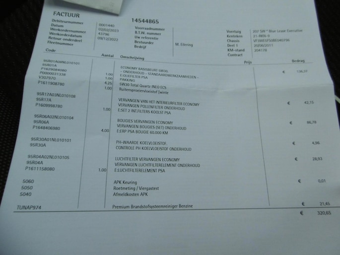 - Onderhoudshistorie aanw.