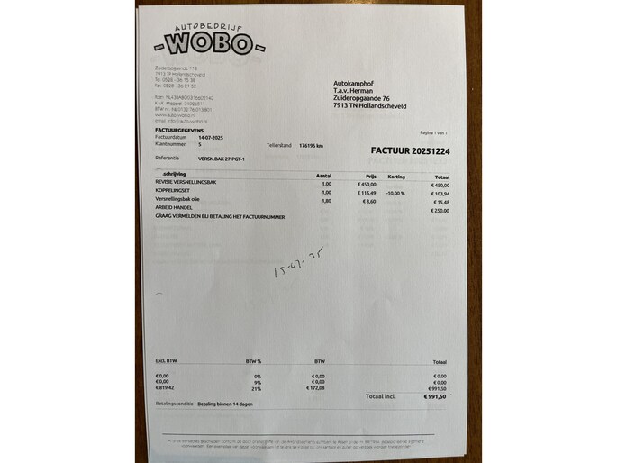 De auto is door ons voorzien van een afleverings beurt 4 nieuwe banden een gereviseerde versnellingsbak en een nieuwe koppelingset [factuur daarvan is aanwezig,zie laatste foto]