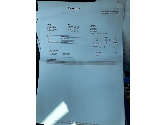 Kilometerstand gecontroleerd