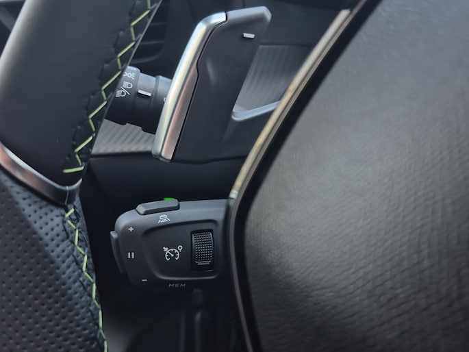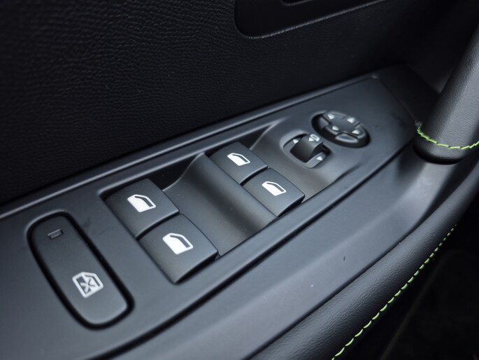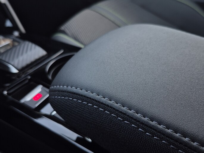 - Armsteunen op de voorportieren bekleed met kunstleder met groen sierstiksel (GT-Line)