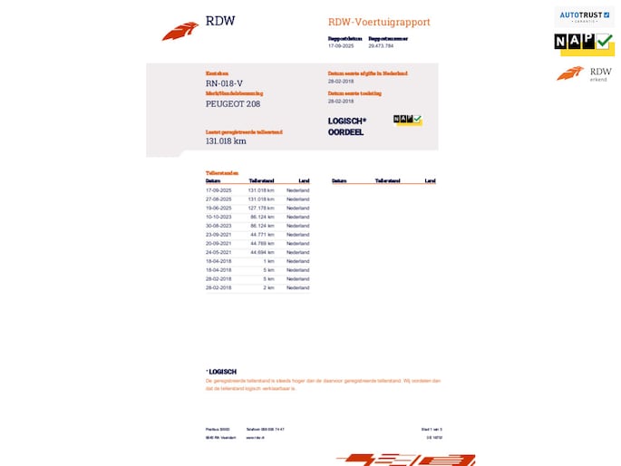 Kilometerstand gecontroleerd