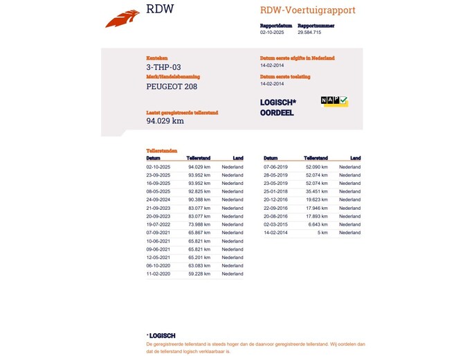 Kilometerstand gecontroleerd
