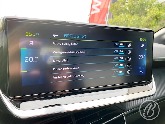 De nieuwste veiligheidssystemen komen in deze Peugeot e-208 samen. De actuele snelheidslimiet, een inhaalverbod en andere verkeersborden. De verkeersborddetectie ondersteunt u tijdens elke rit. De actieve dodehoekdetectie helpt ongelukken te voorkomen. Vermoeid achter het stuur zitten vergroot de kans op een ongeval. Vermoeidheidsherkenning waarschuwt tijdig als u aan een rustpauze toe bent.