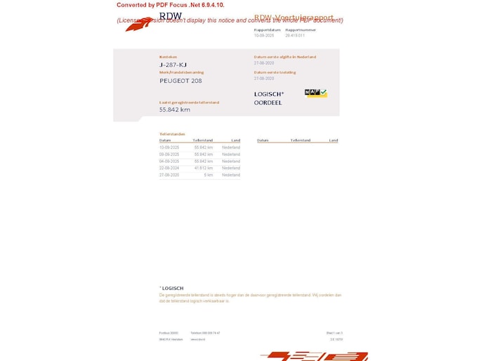 Kilometerstand gecontroleerd